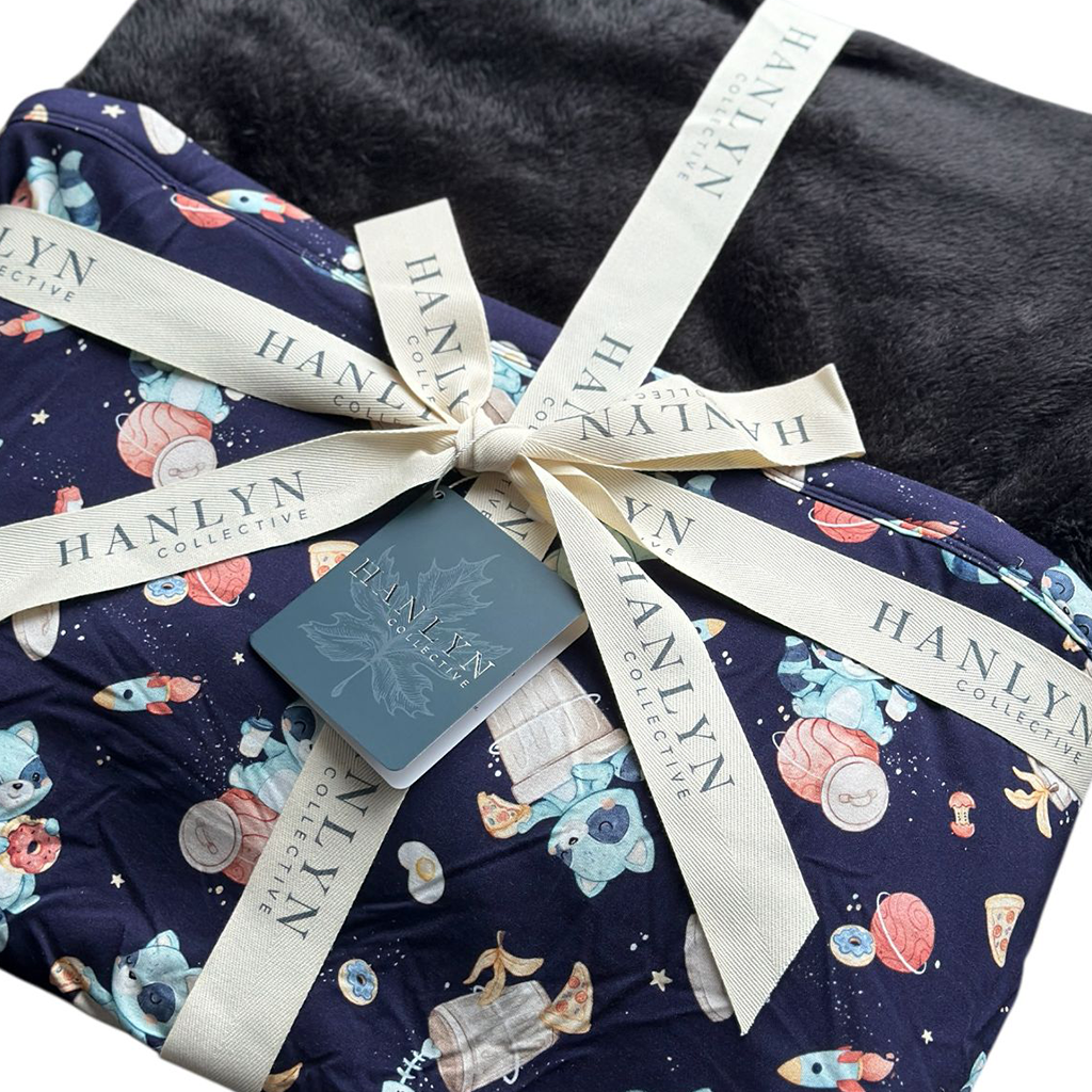 This double layer one-of-a-kind PLUSH bamboo blanket will be a welcome addition to any home. This insanely soft blanket is like a warm hug with one side being bamboo and the other feeling like a plush teddy bear. A perfect option for stroller walks or to get cozy and wrap up on the couch for a snuggle.